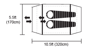 SET UP DIMENSIONS:10.5ft (320cm) L x 5.5ft (170cm) W x 4.5ft (140cm) H