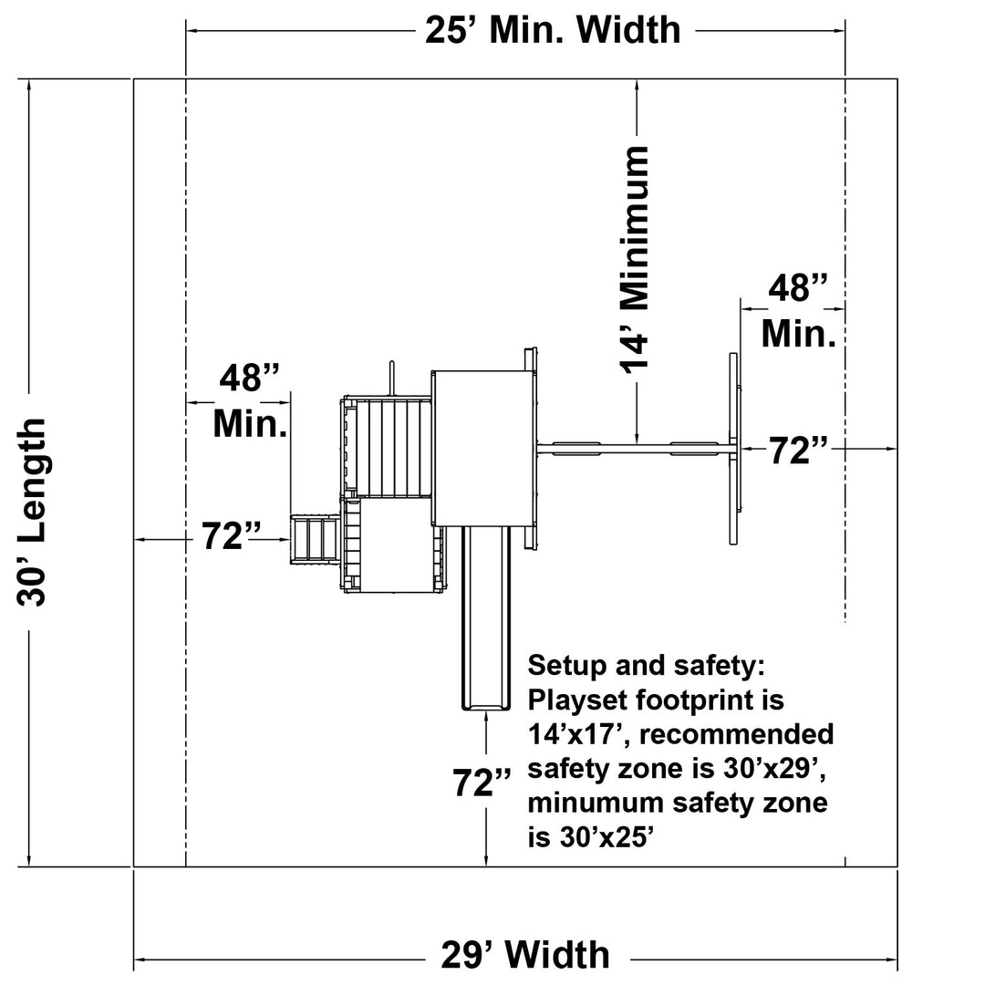- Recommended dimensions with safety zone: 29’ x 26’