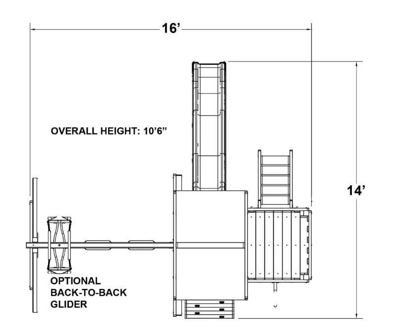 - Overall dimensions: 16' x 14' x 10'6" H