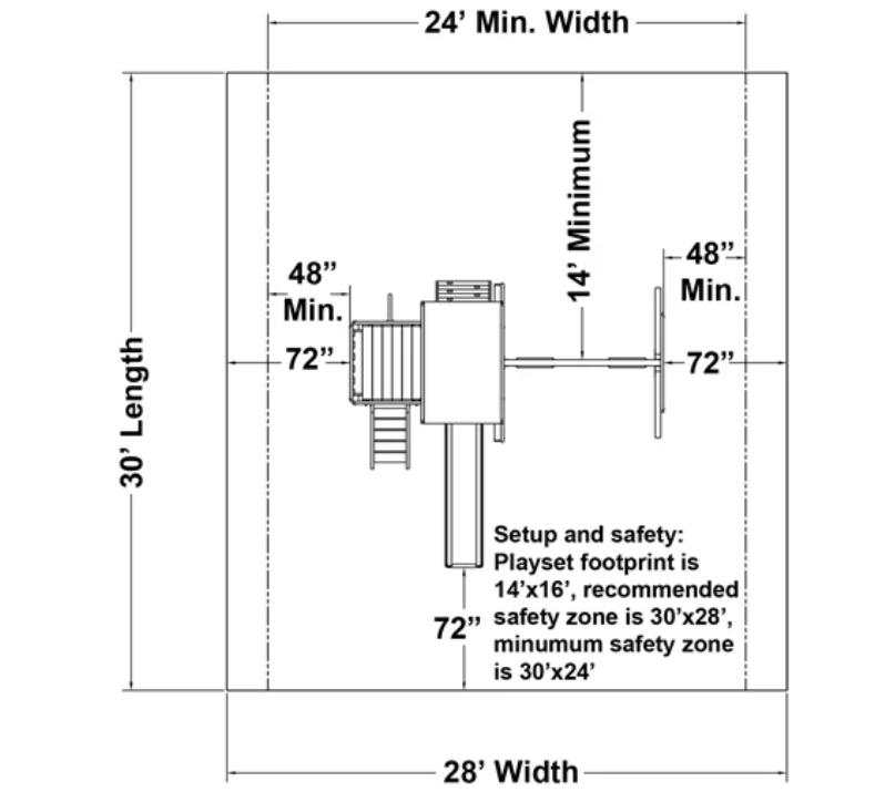 - Recommended safety zone dimensions: 28â x 26â